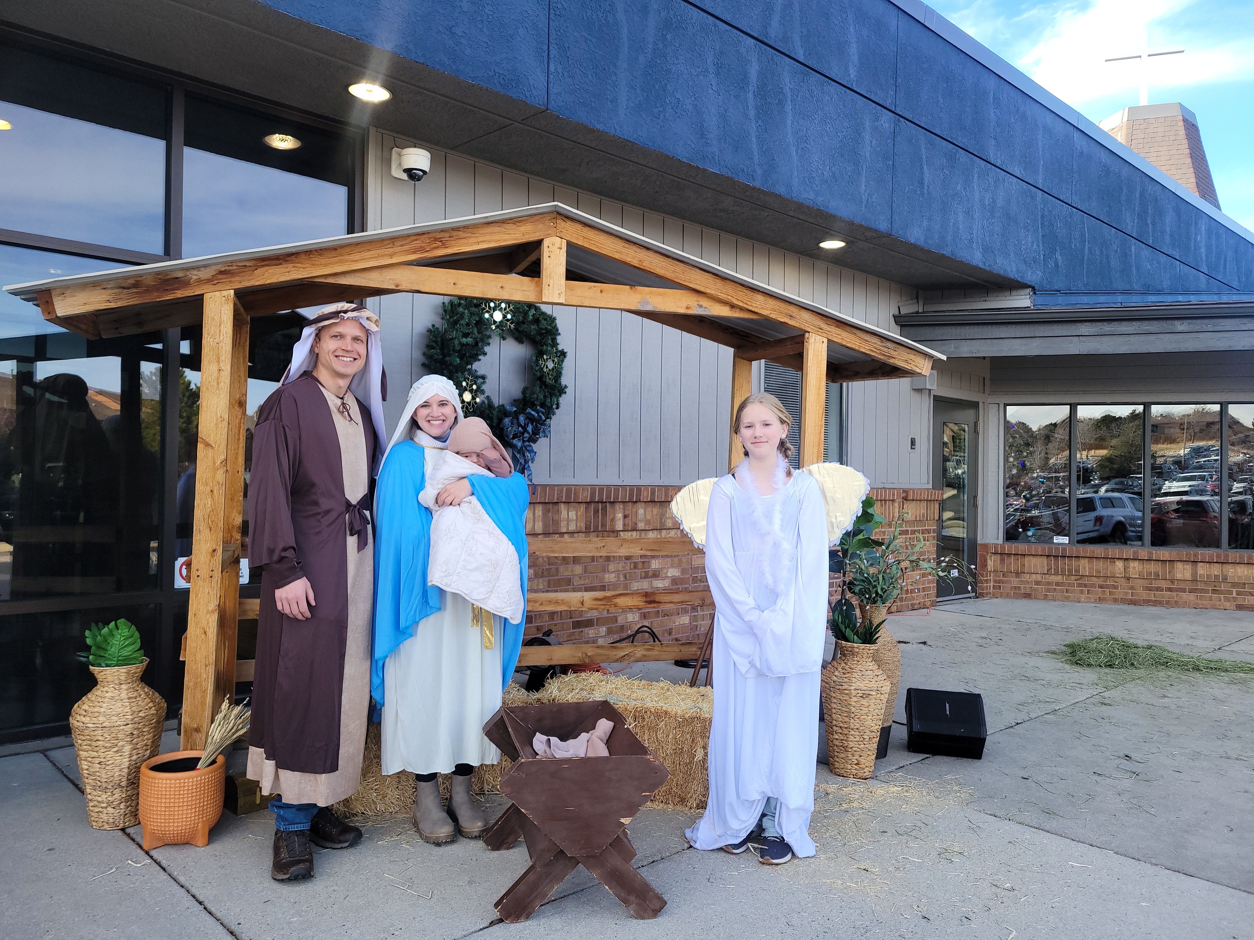 Every Christmas, Joseph, Mary, and a girl dressed as an angel greet us at the entrance. The baby Jesus is played by a real infant.