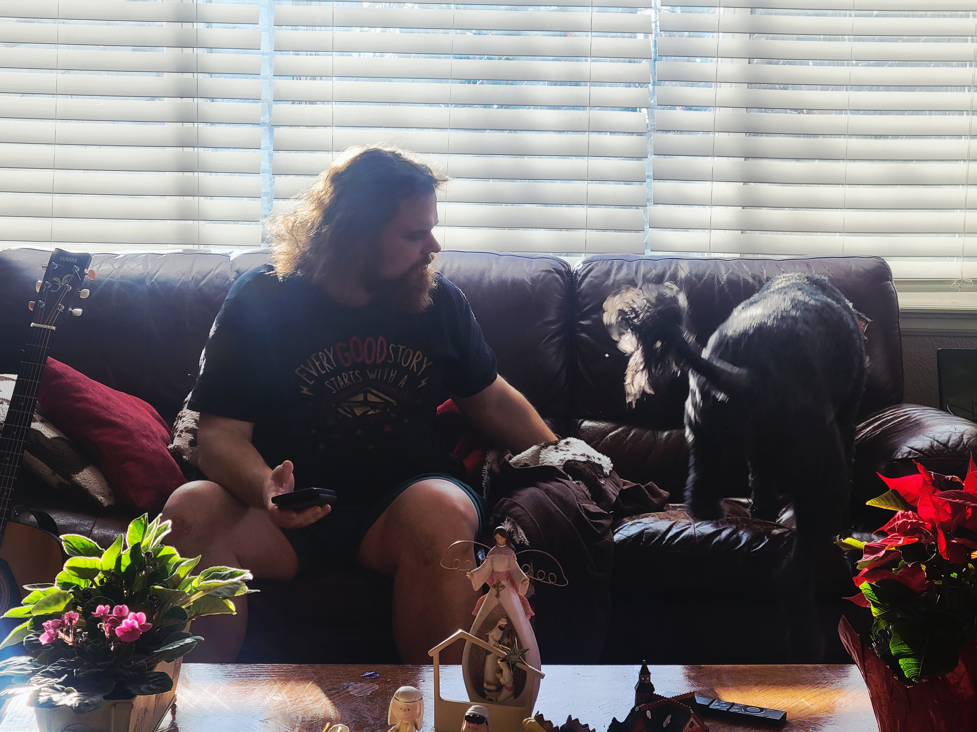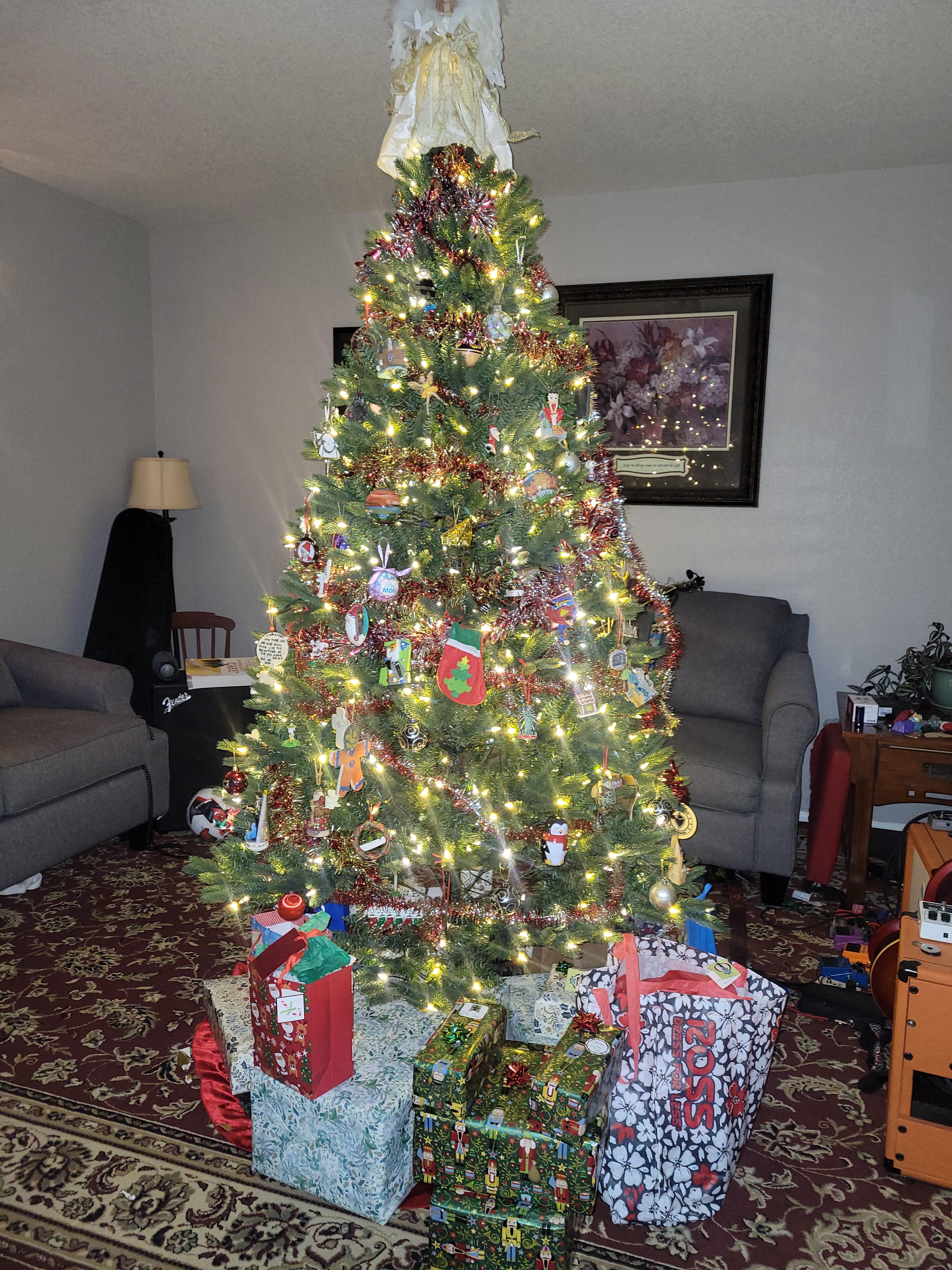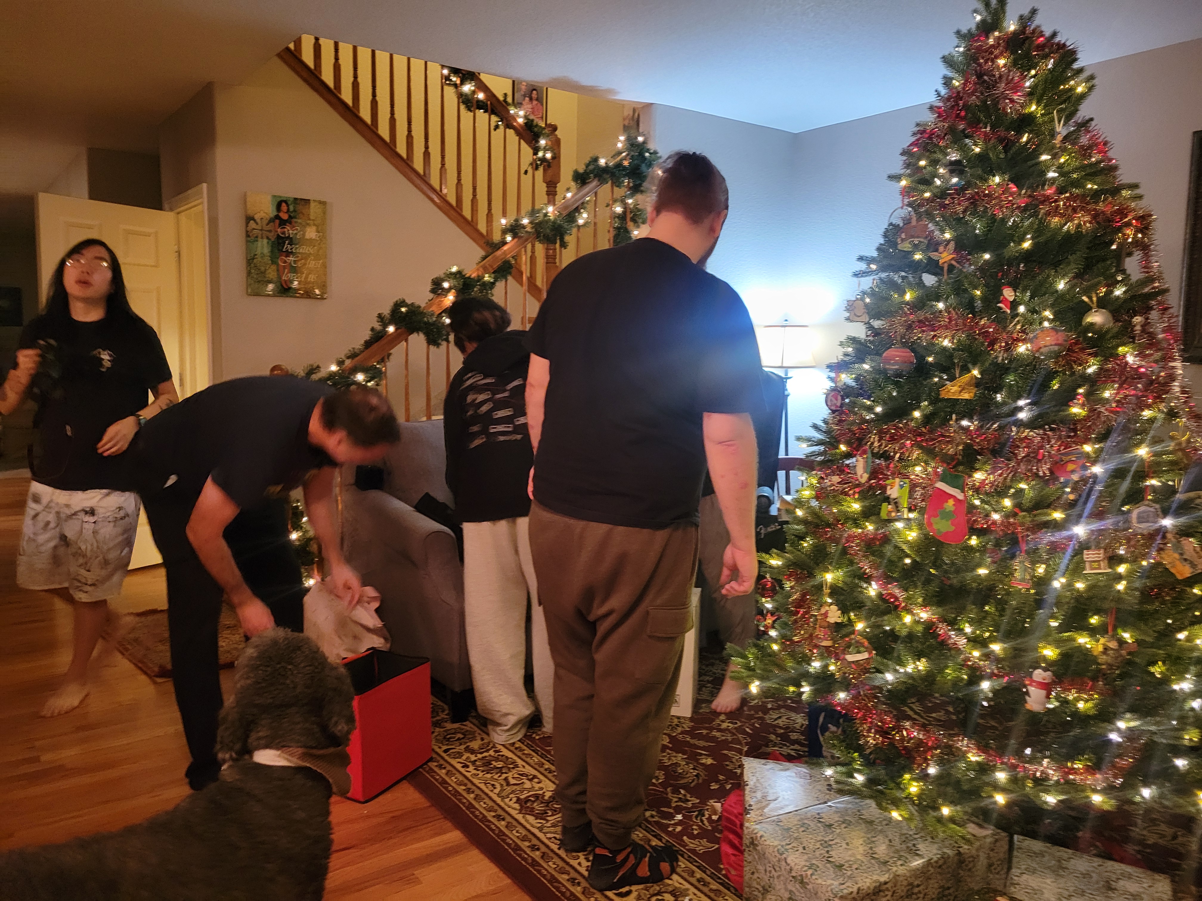 아들, 딸, 그리고 사위와 함께 트리 장식을 합니다.