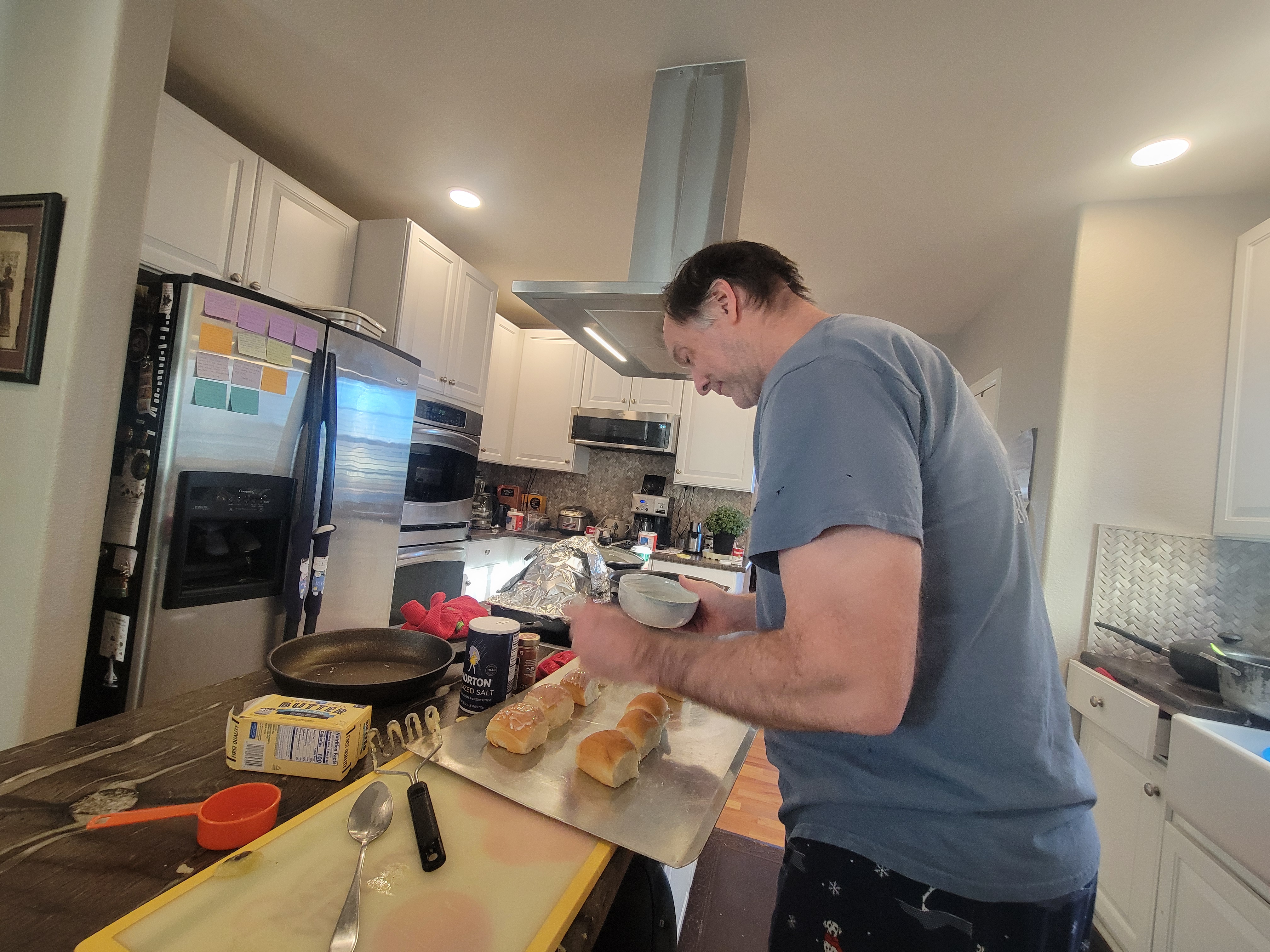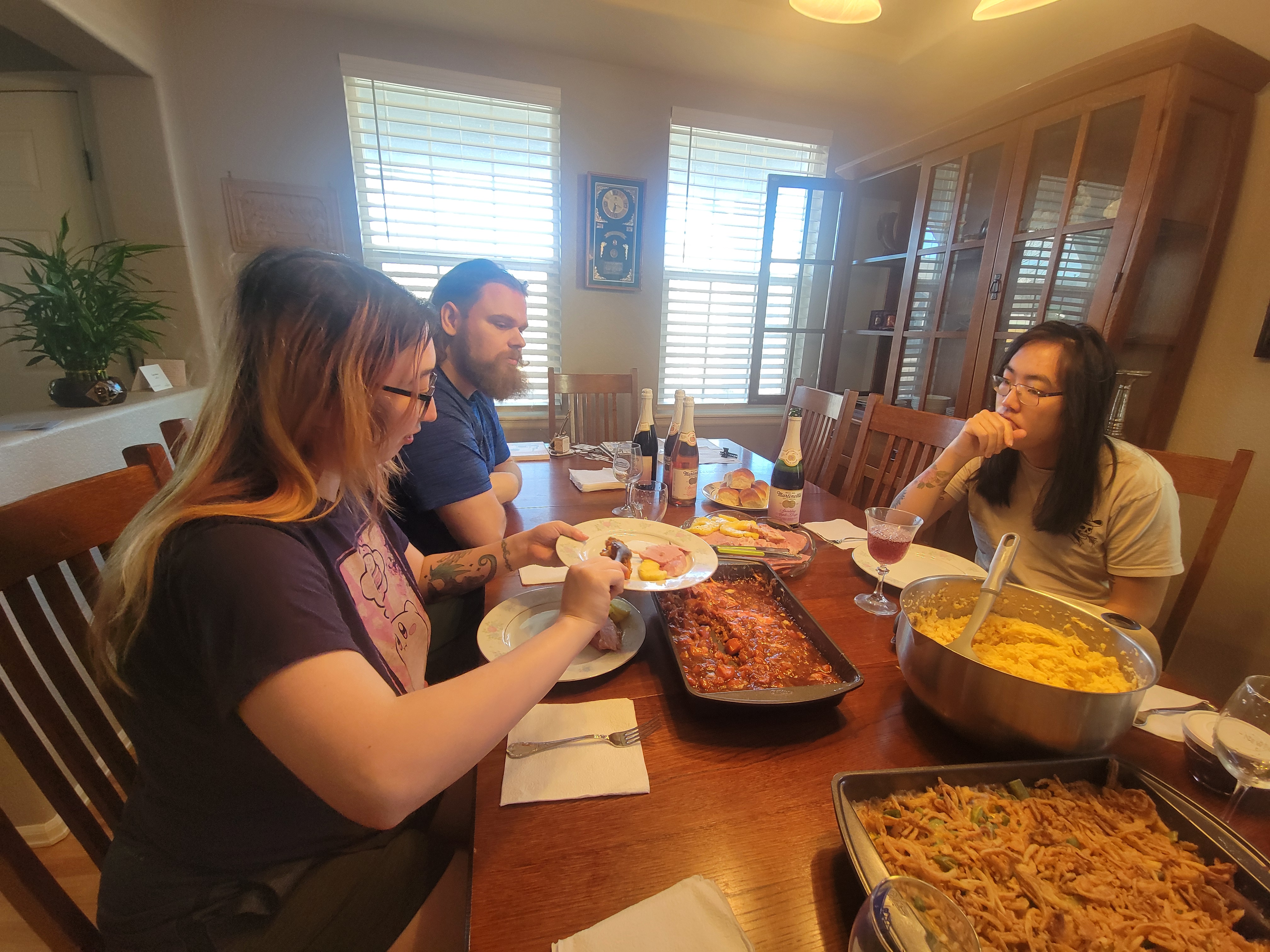 The dedication to cooking is amazing. I need to learn to appreciate the little things—these small moments bring me happiness. My husband seemed completely exhausted after preparing the four‑hour meal. After we shared the meal, he went upstairs to take a nap. His cooking skills are improving; he has made significant progress and can now put them to good use.