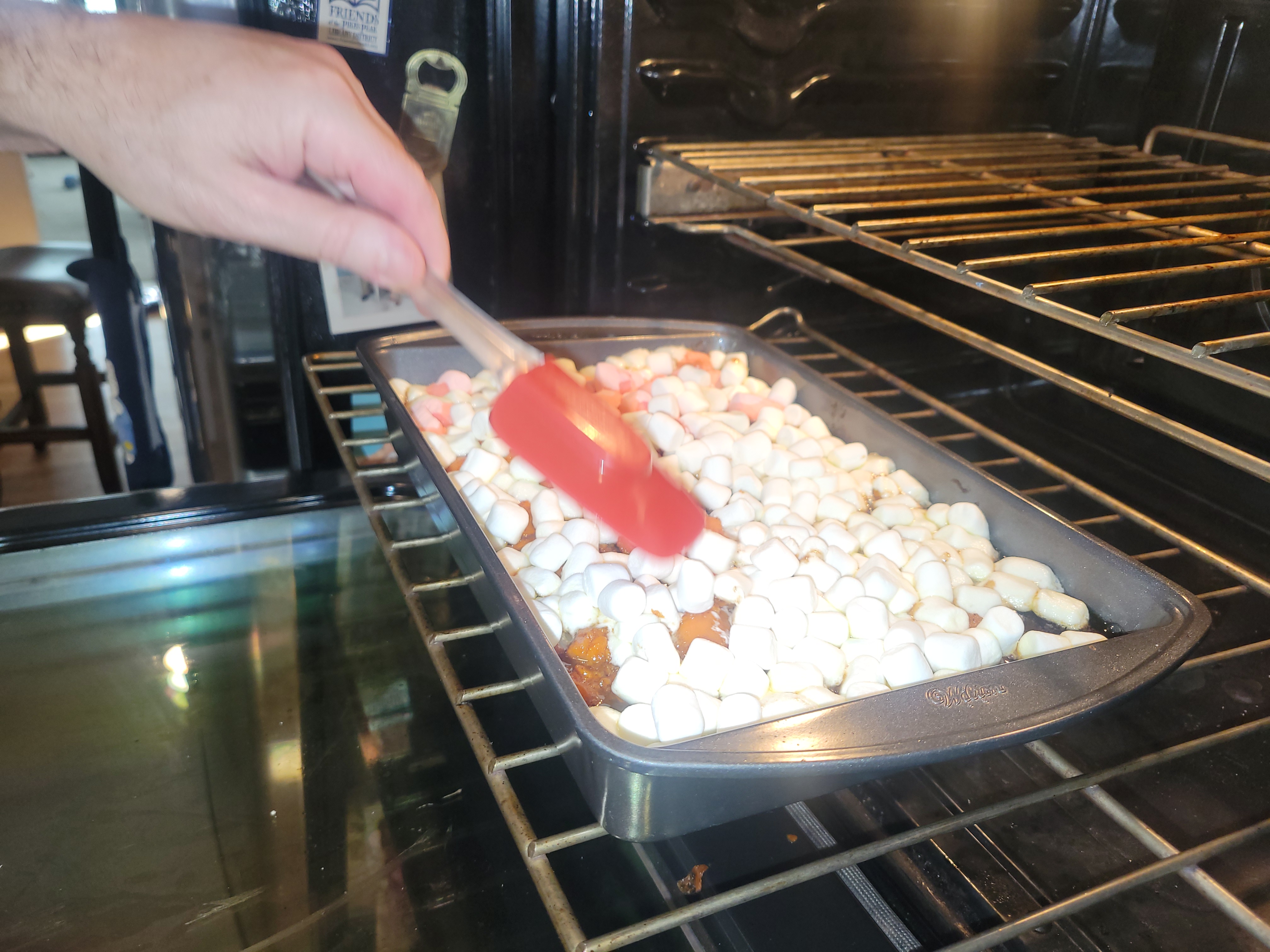 Please handle it gently—he's concentrating hard on cooking.