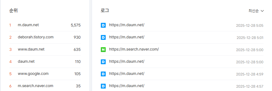 현재 2025년 12월 28일, 다음으로 들어온 트래픽이 5,575명이다. 놀라운 다음의 효과를 보고 있는 중이다.