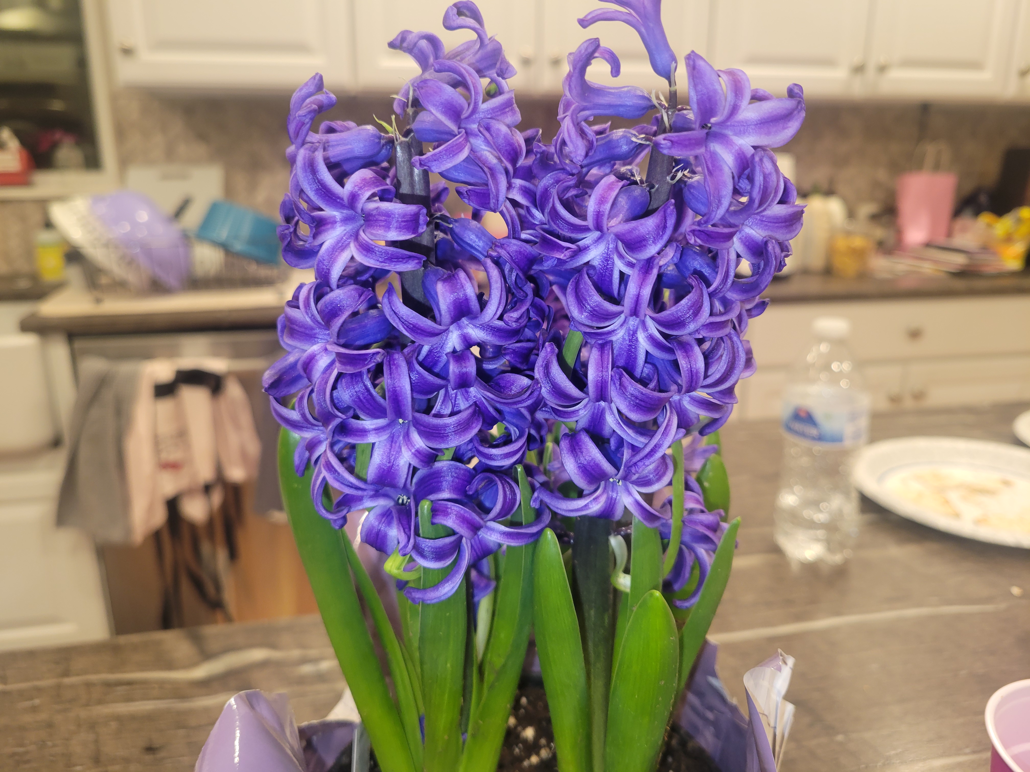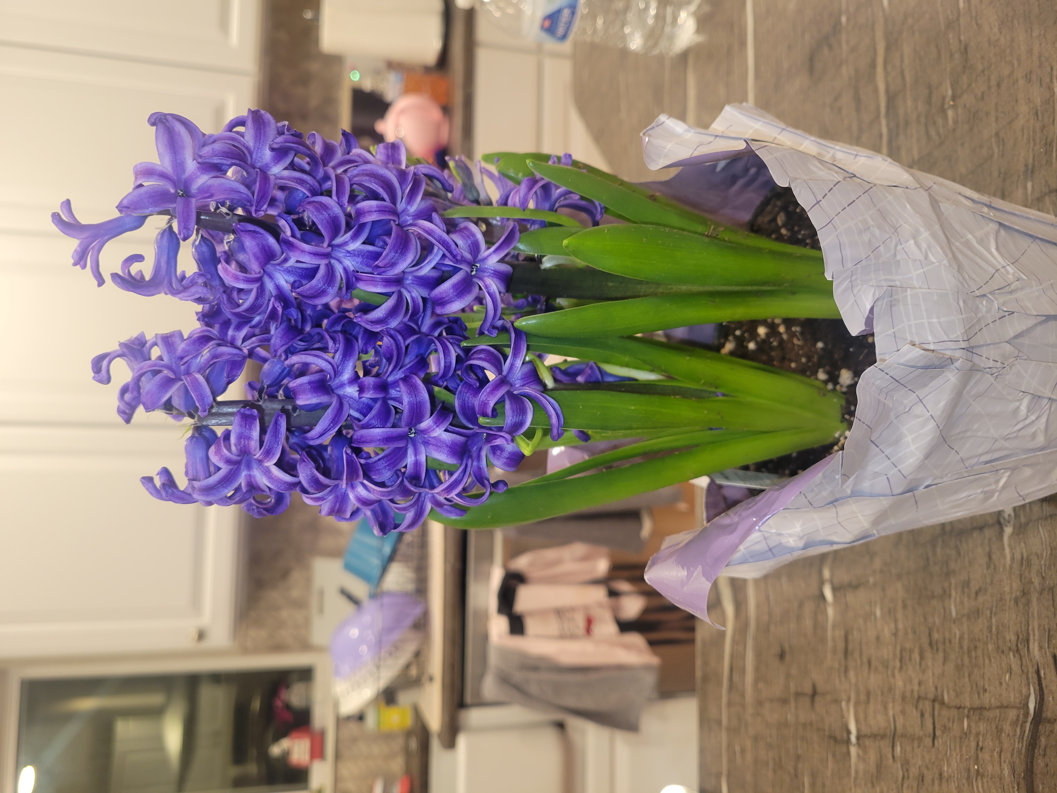 여기까지는 그렇다 치고요. 아들하고 가게를 갔는데요. 꽃을 보니 너무 좋더라고요. 히야신스 꽃의 향이 가게를 가득 메우고 있었지요. 그래서 참새가 방앗간을 그냥 지나칠 수가 없듯이 저도 그랬답니다. 꽃을 사고 싶은 마음에 하나를 집어 들었고 살려고 하는데요. 아들이 그럽니다. "엄마. 꽃을 두 개 사면 안 되나요?" 엄마는 이미 눈치가 백 단인지라, 아들이 말하는 깊은 의미를 알 수가 있었네요. 엄마는 말합니다. "오. 너 저녁 초대받았다면서, 그러면 히야신스를 선물로 초대한 분한테 드려라." 이 말을 떨어지기 무섭게 아들은 반응합니다. "엄마 고마워요."