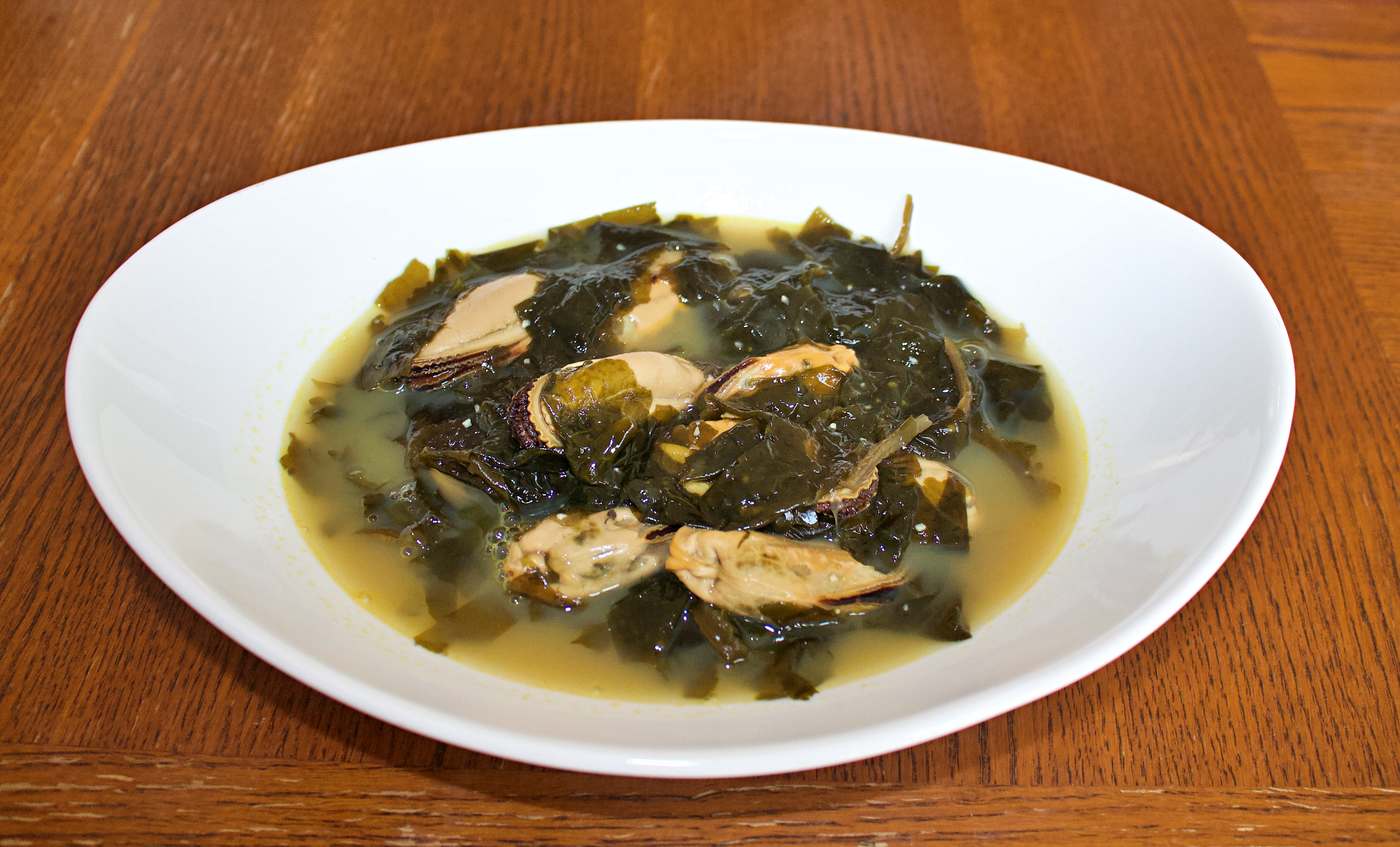 미역국에 홍합을 넣어서 끓여 봤습니다. 국물이 찐한 것이 시원하고 맛이 있어요.