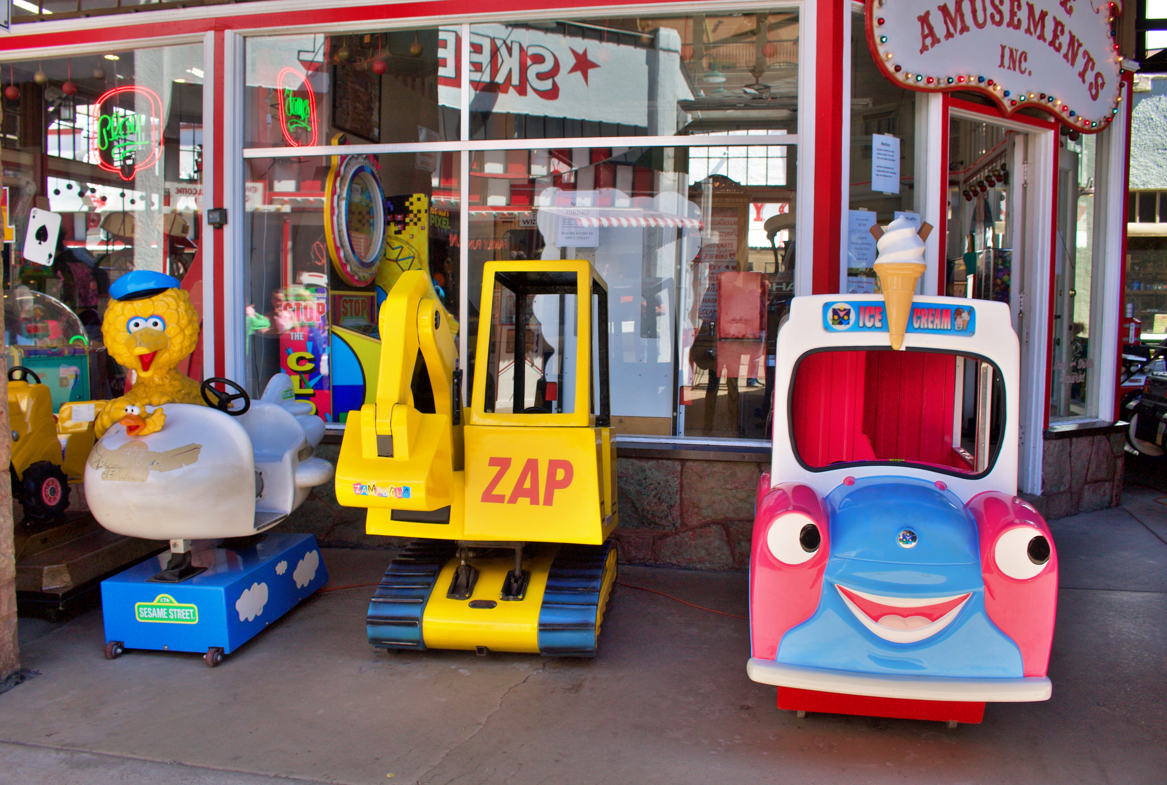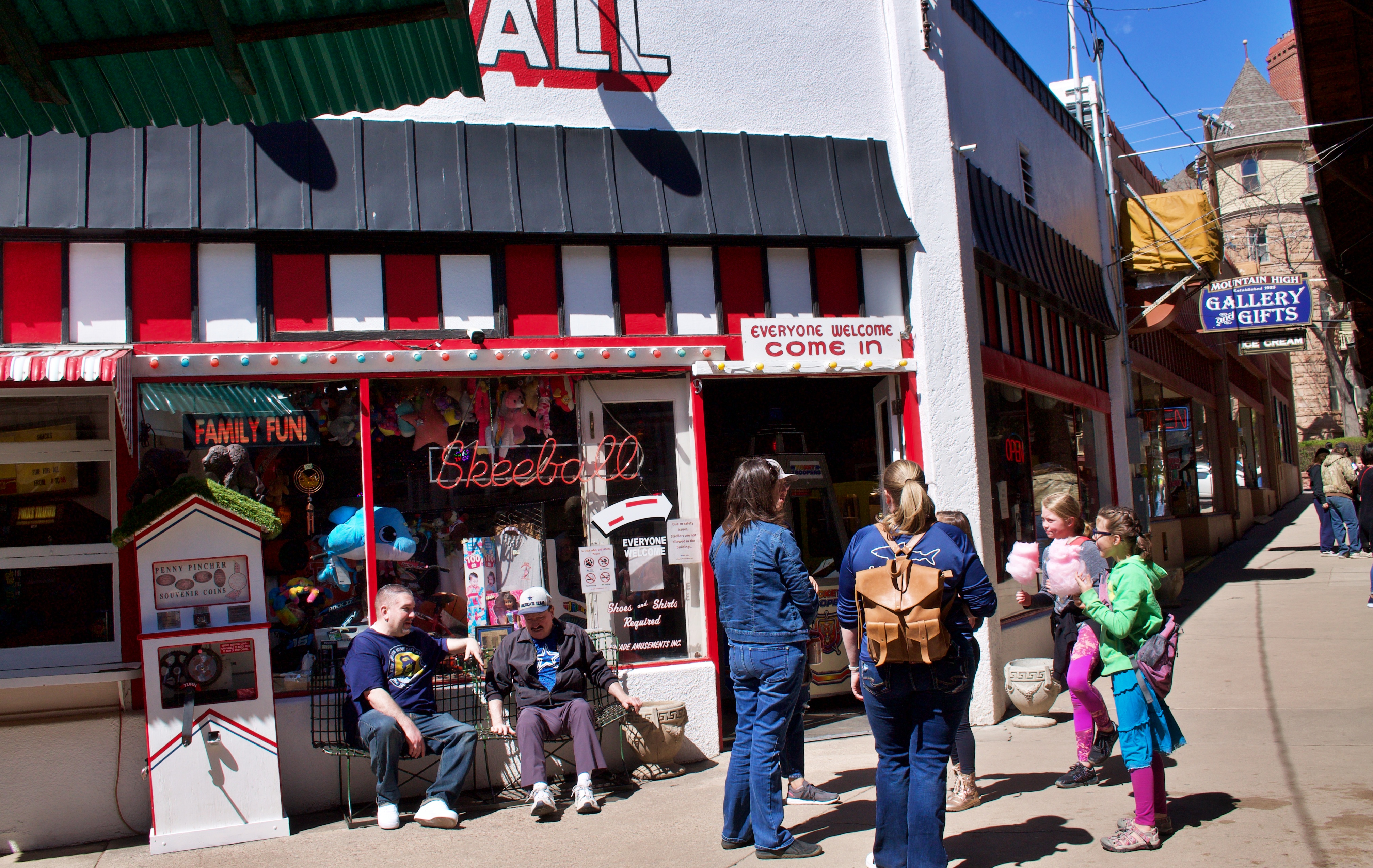 캐서린의 게임을 하는 모습을 담아 보았습니다. 여기는 마 나투 스프링스입니다. 콜로라도에 있는 관광지라 보면 되겠습니다. 이곳에 게임하는 곳과 음식, 옷을 판매하는 여러 상점과 관광객이 좋아하는 것을 많이 팔고 있었어요. 예쁜 가게들 사이로 보이는 옛날 게임기 있는 그 현장을 같이 가 보시죠?