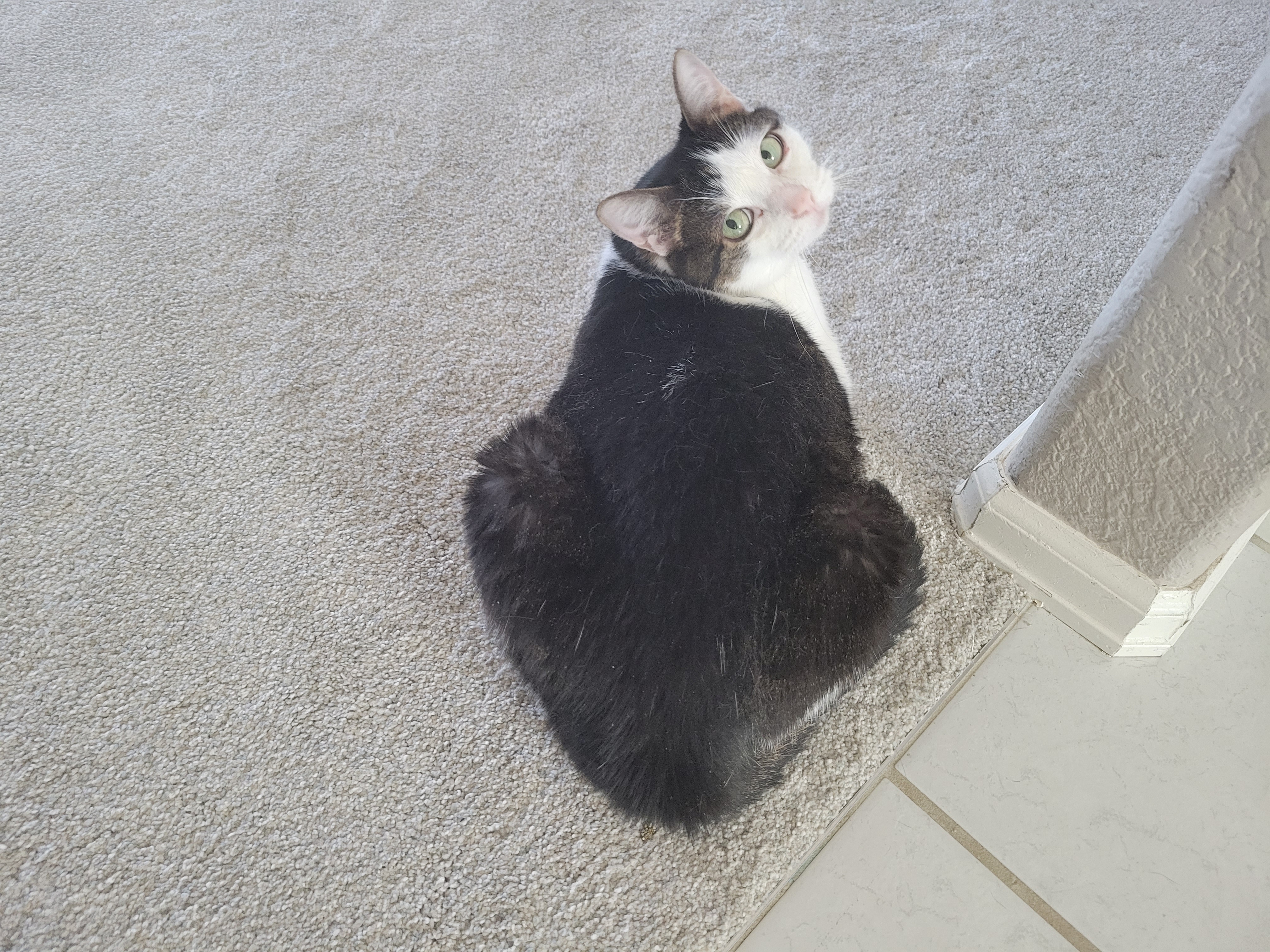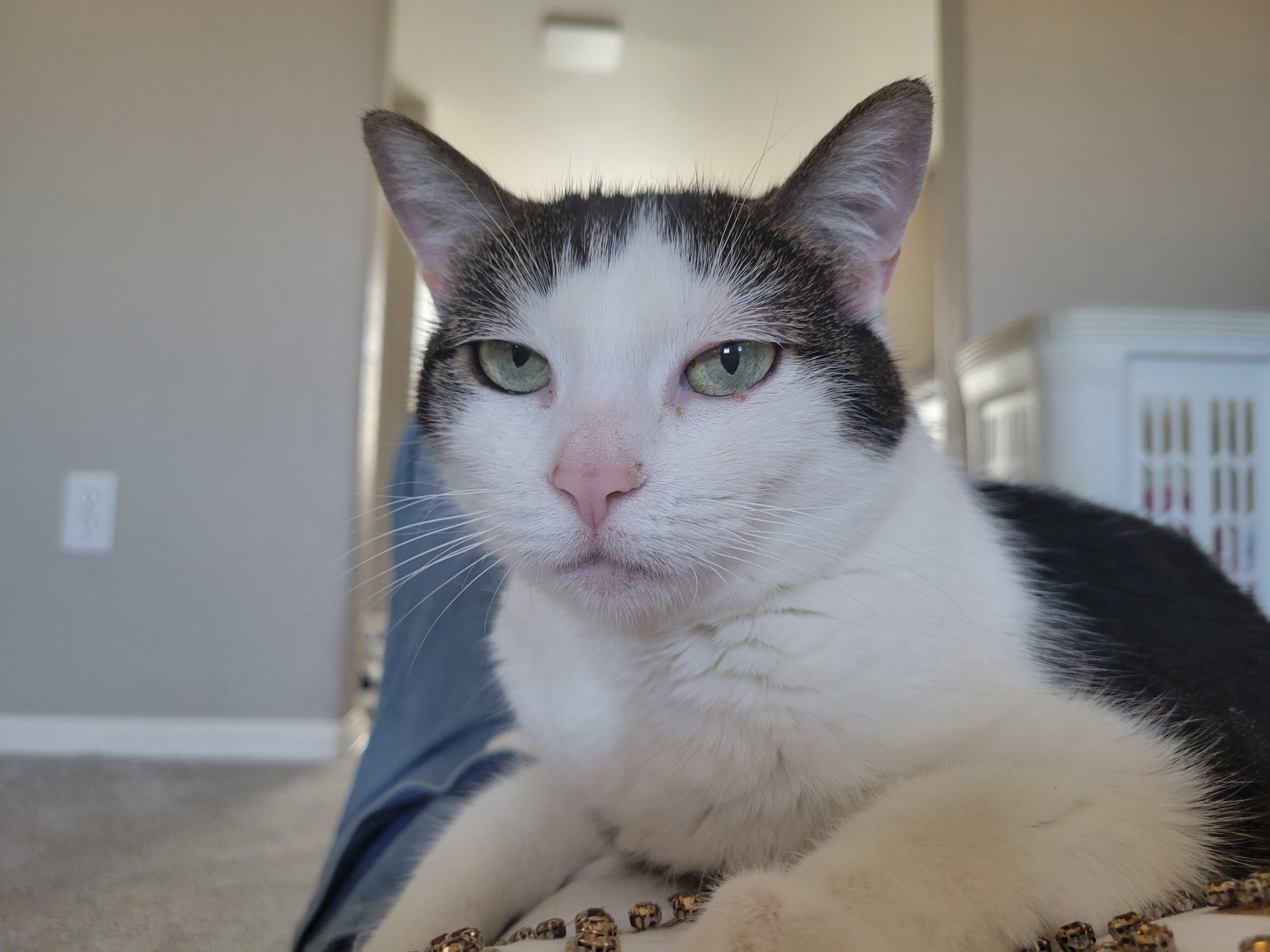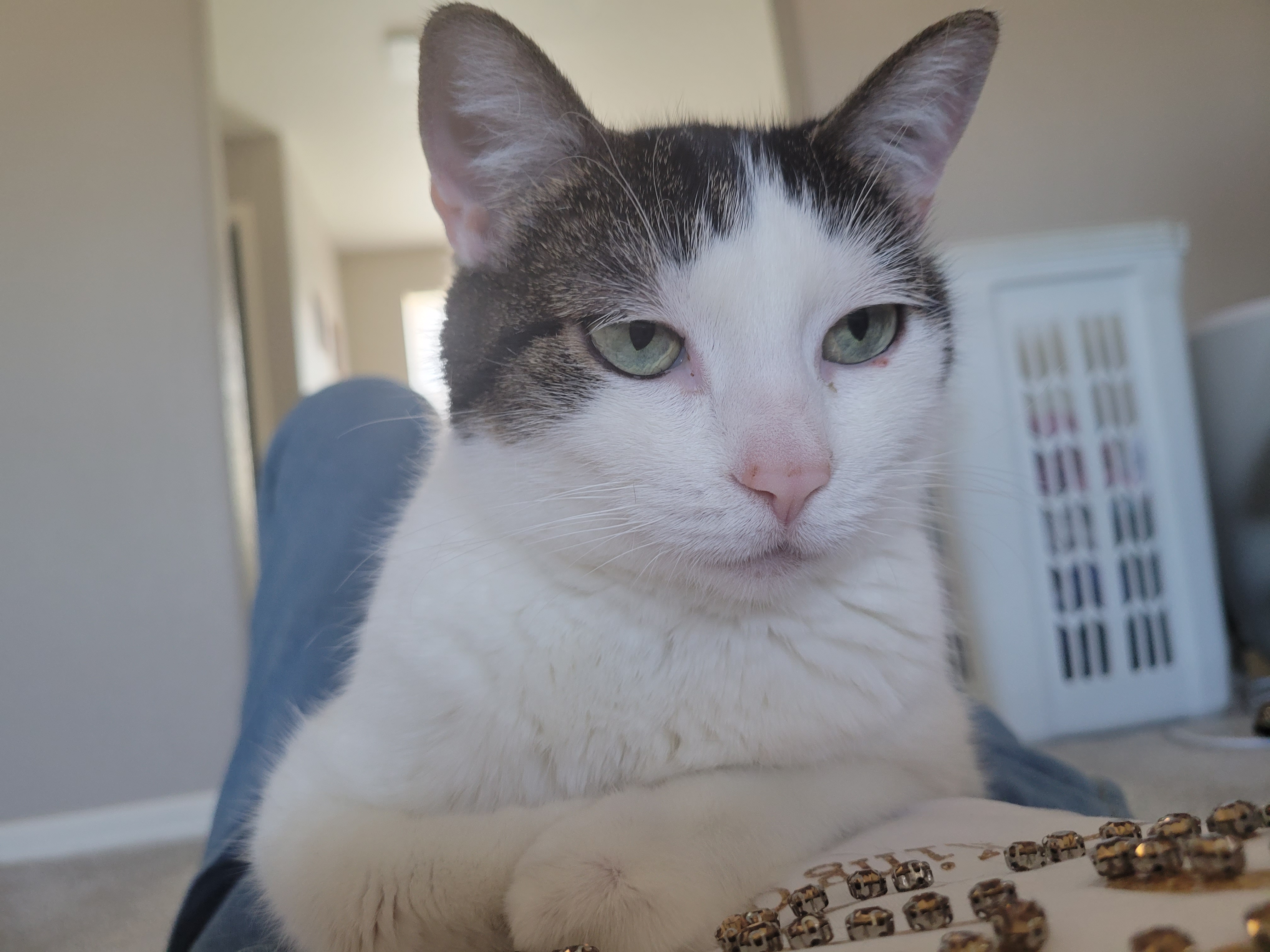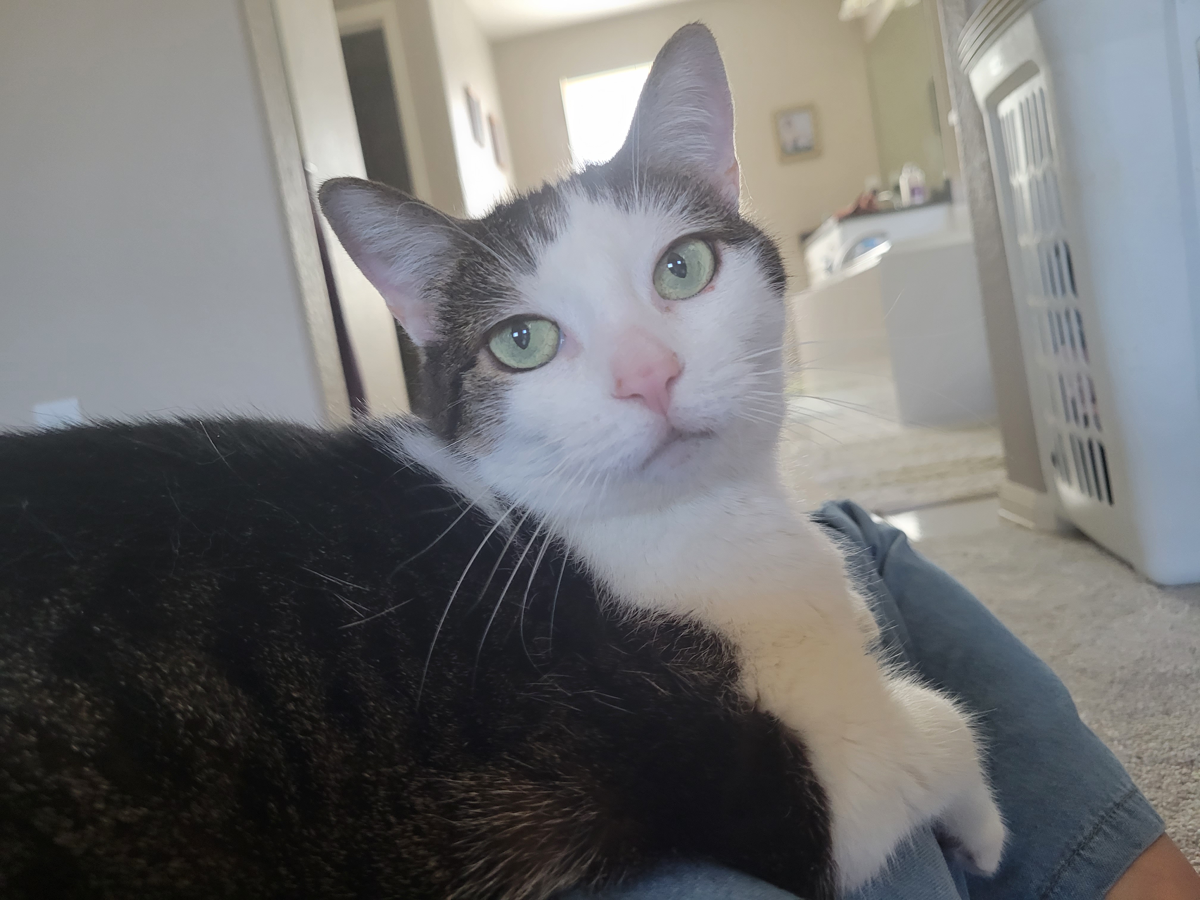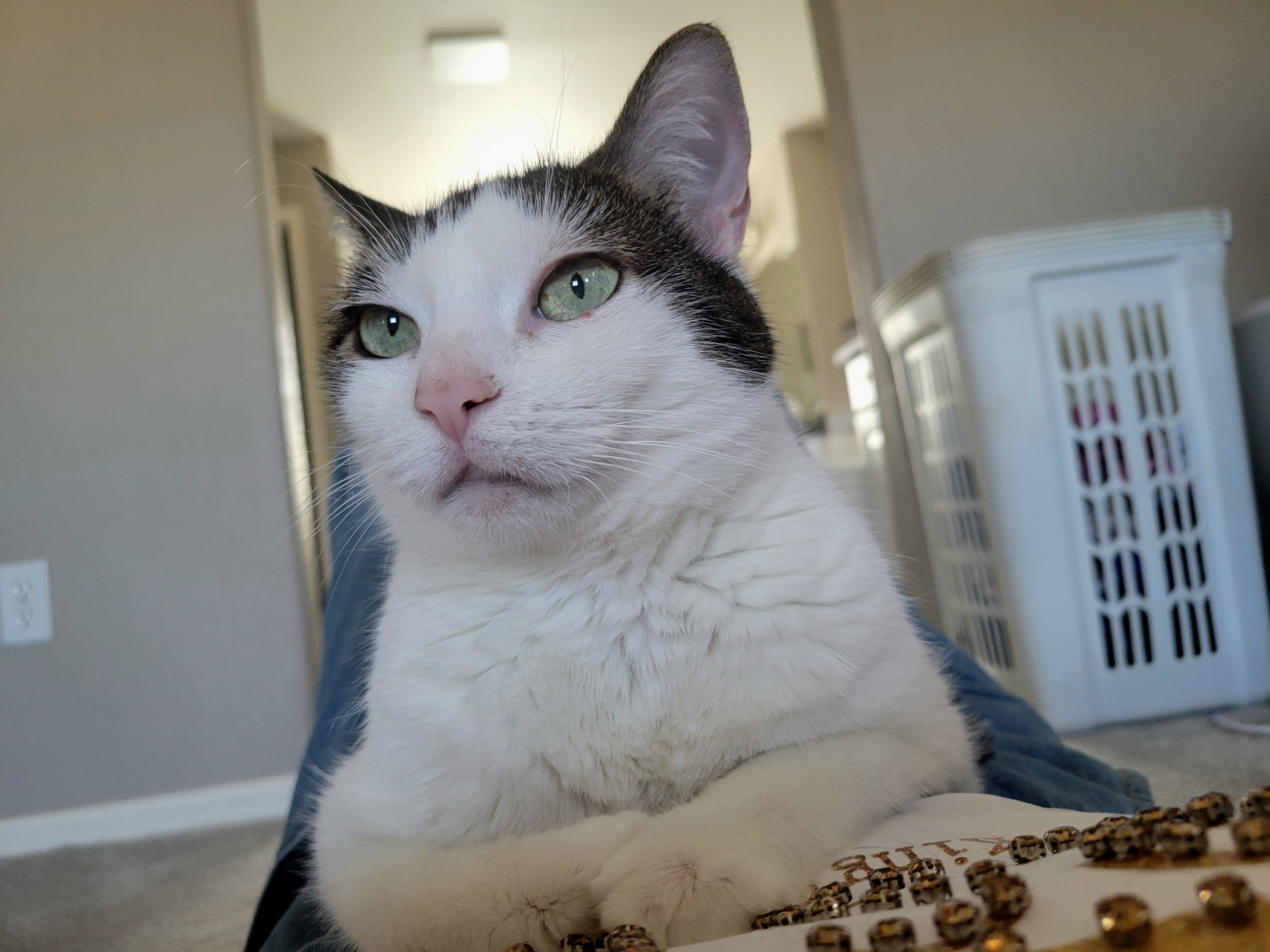 고개 돌려서 쳐다보기 힘드니 저의 배 위에 올라탔습니다. ㅠㅠ 뱃살이 출렁이는 배 위에 앉아 계신 나비 냥이님 ㅠㅠ