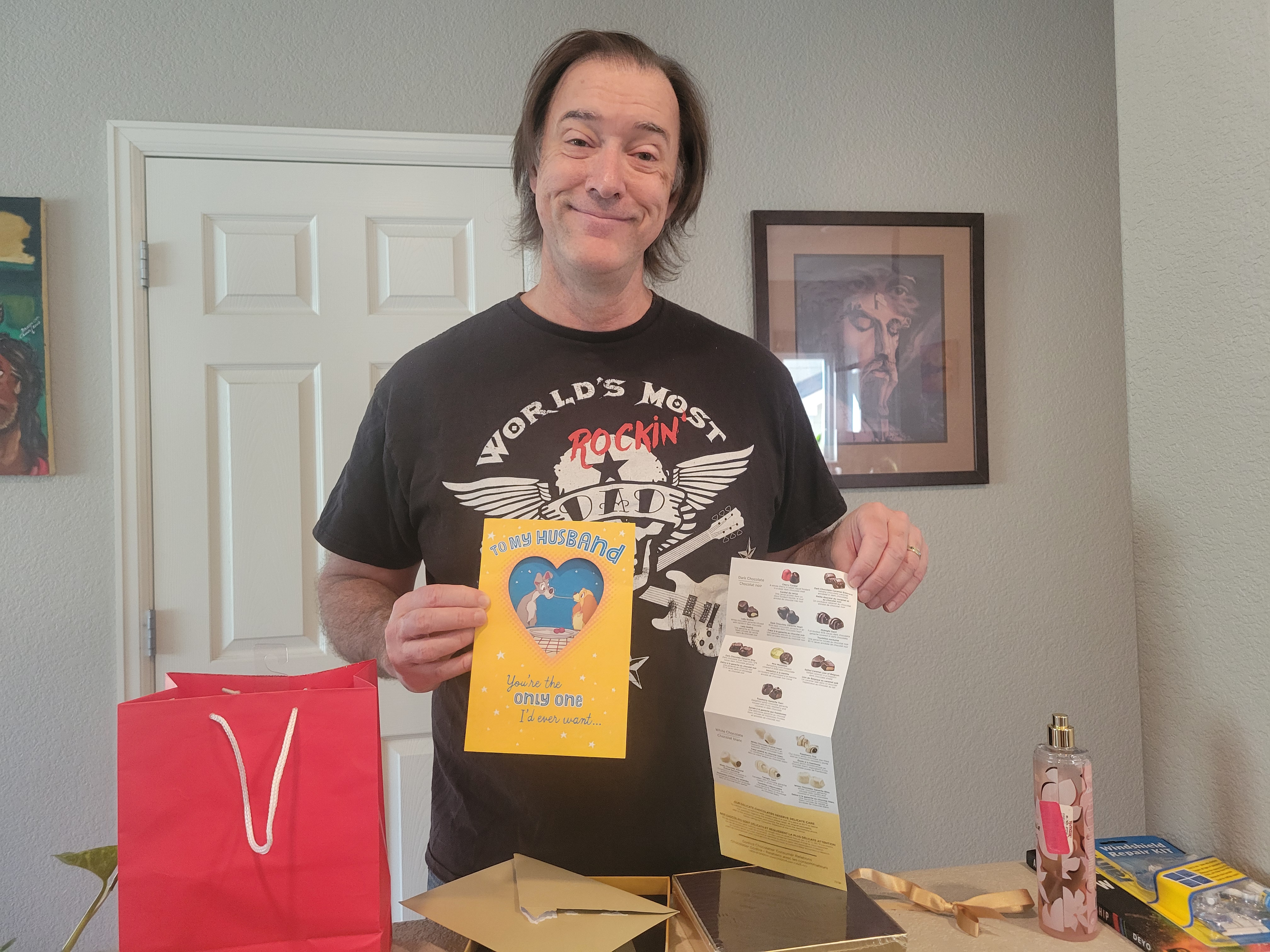 남편에게 초콜릿 선물을 했습니다. 참 좋아하시고 만족하는 모습입니다.
